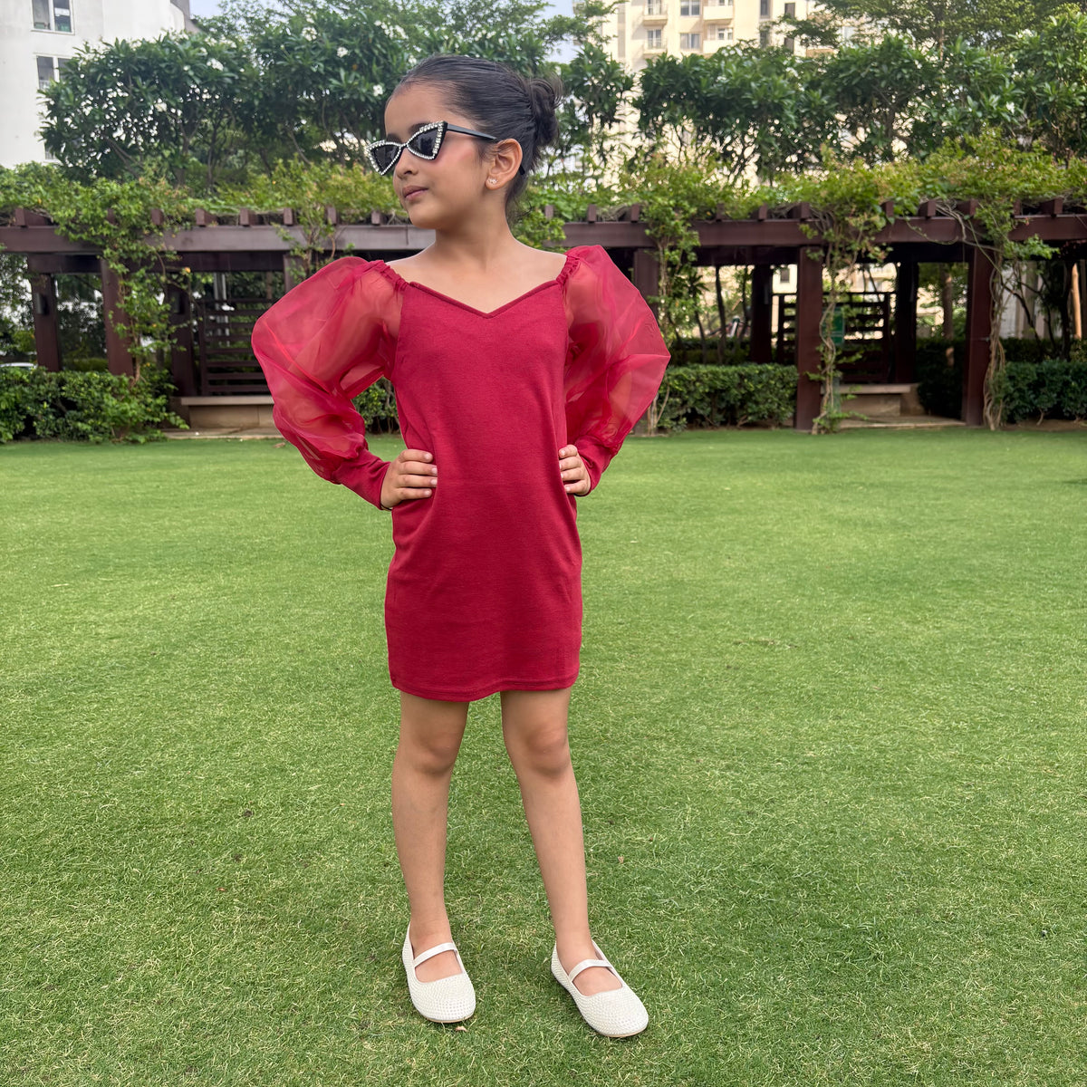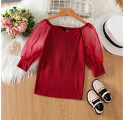 Burgendy Mesh Sleeve Dress - Age 2 to 3