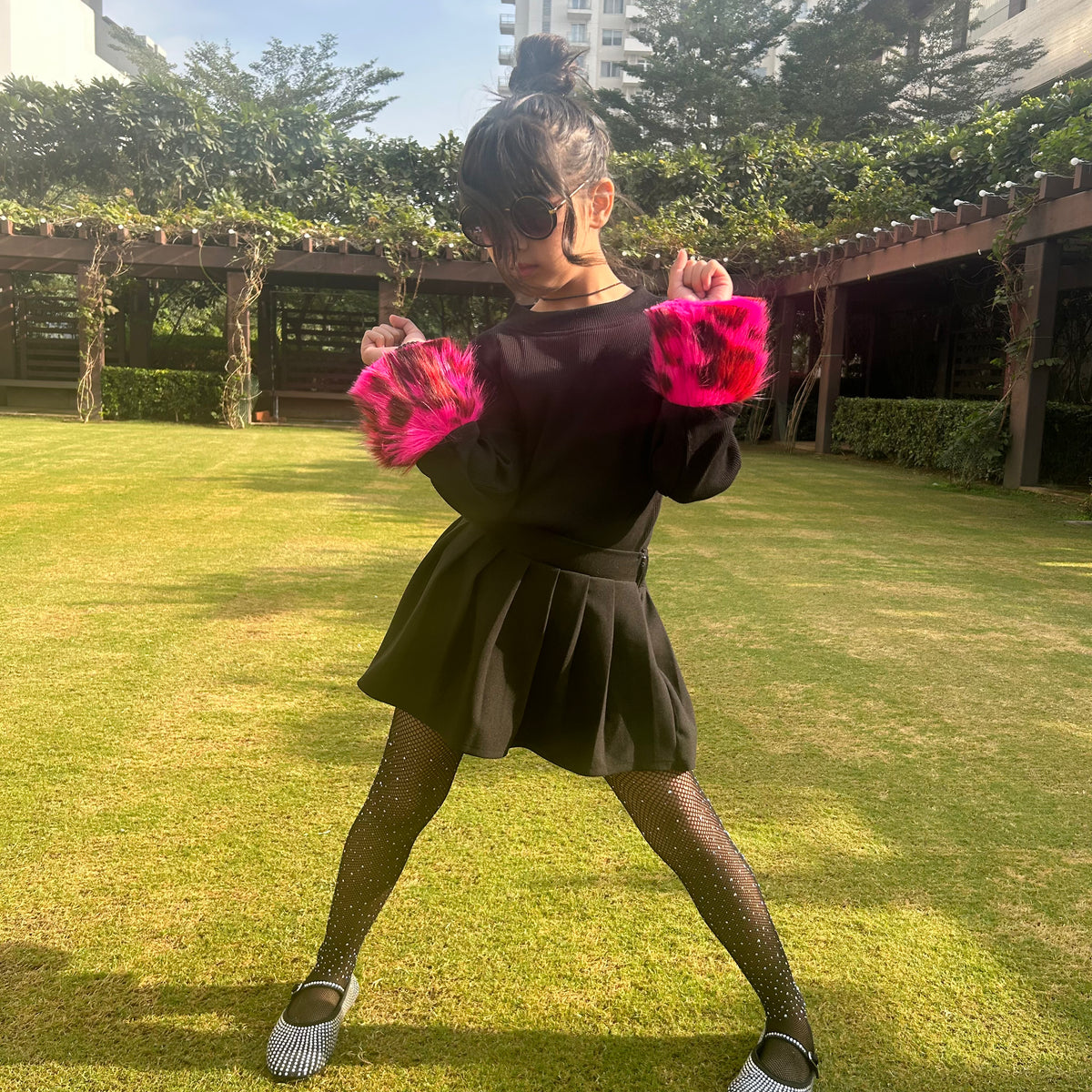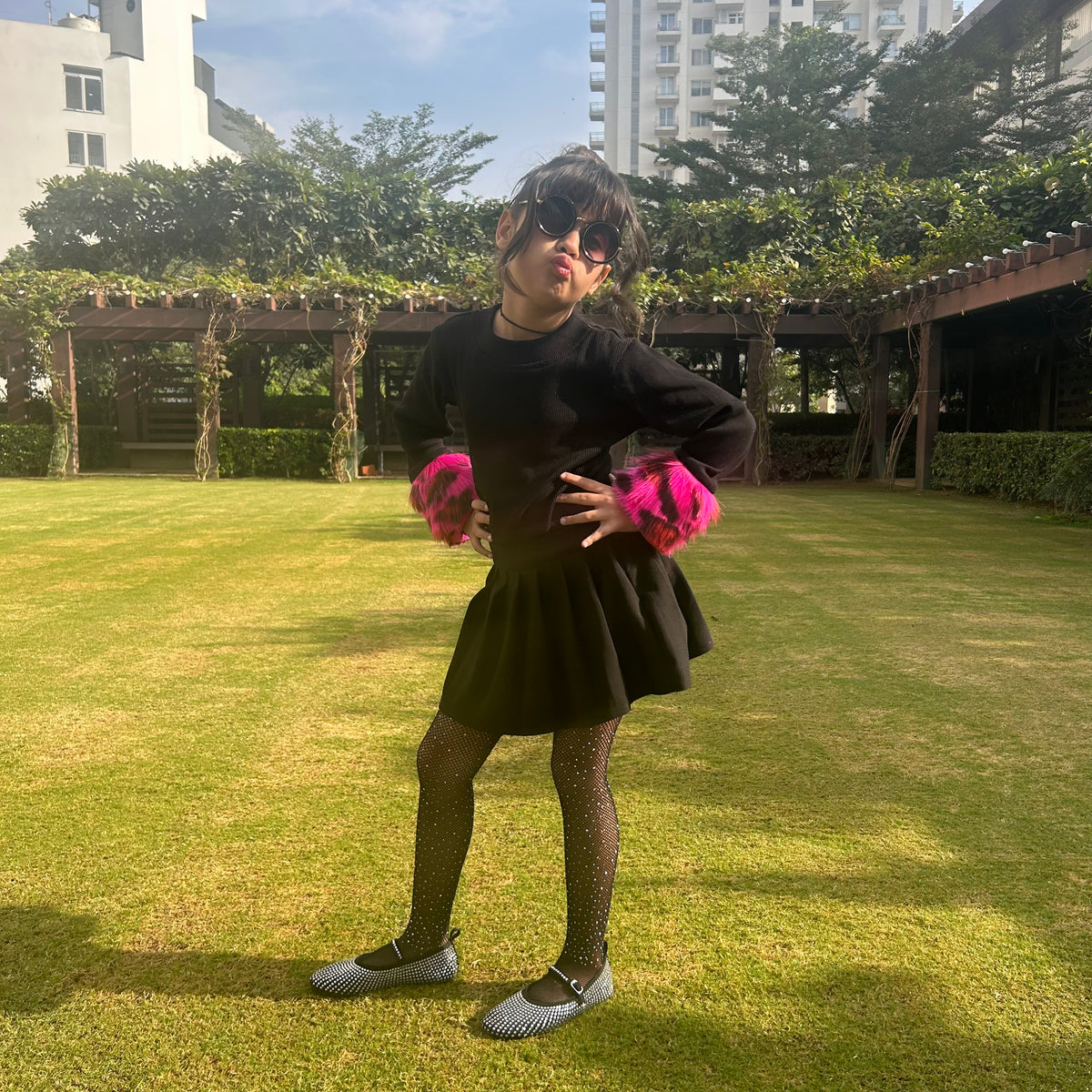 Anisha This top is so vibrant. The fur on the sleeve is what I love the most. It’s comfortable yet so sassy